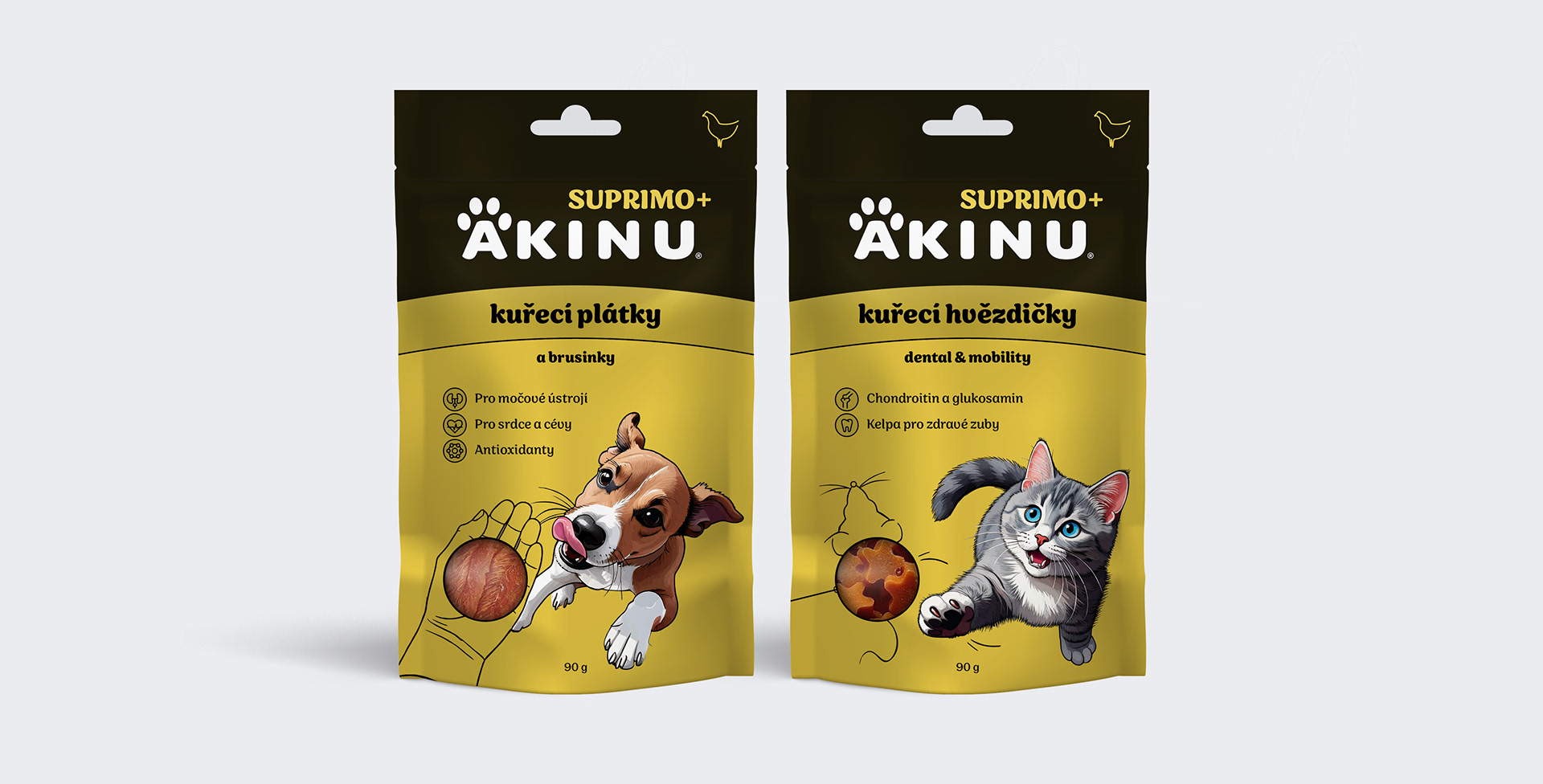 Návrh nových obalů včetně nového sub-brandu a vizuální identity pro psí a kočičí pamlsky.